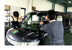 エアバック装着車(ほとんどの乗用車)は作業時間60分(車種によっては+30~60分)の他に、 接着剤の乾燥時間が約2時間必要となります。